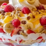 Banana Split Fluff is a delightful dessert that brings the beloved flavors of a classic banana split into a fun and easy-to-make treat. This fluffy, creamy dessert is perfect for parties, picnics, or just a sweet snack at home. With a combination of fruity goodness and whipped topping, it’s sure to be a hit with both kids and adults alike!