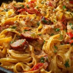 A delicious and quick dish that combines the bold flavors of Cajun cuisine with creamy pasta, perfect for busy weeknights or gatherings.