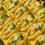 Delicious and satisfying stuffed pasta shells filled with chicken, broccoli, and cheese, perfect for family dinners or meal prep.