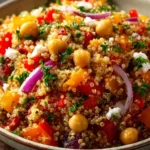 If you’re looking for a flavorful and nutritious salad, the Chickpea and Roasted Red Pepper Quinoa Salad is a perfect choice. This vibrant salad combines protein-packed chickpeas with the nutty taste of quinoa and the sweet, smoky flavor of roasted red peppers. It’s not only healthy but also easy to prepare, making it an excellent addition to any meal or a filling lunch option.