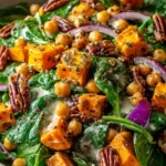 This salad is a great choice for many reasons. It combines protein-rich chickpeas, fiber-filled sweet potatoes, and vibrant spinach for a fulfilling meal. The lemon yogurt dressing adds a creamy tang that ties all the flavors together. Plus, it’s easy to make and can be prepared ahead of time, making it convenient for busy days.