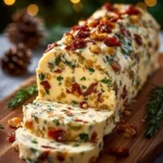 A delightful holiday treat featuring creamy cheeses, herbs, and dried fruit, perfect for gatherings and celebrations.