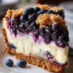 Pyszny deser łączący słodycz borówek, kremową masę serową i chrupiącą kruszonkę, idealny na weekendowe popołudnie.