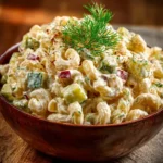 A delightful twist on traditional pasta salad with creamy mayonnaise, tangy dill pickles, and crunchy vegetables, perfect for any gathering.
