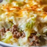 A comforting casserole combining ground beef and creamy cabbage, perfect for busy weeknights or family dinners.
