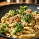 - Return the cooked chicken to the skillet, then add drained pasta and broccoli. Toss gently to coat everything in the sauce and heat through (1–2 minutes). If needed, add more pasta water to reach desired consistency. Taste and adjust seasoning.