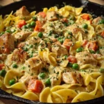 Creamy Chicken Pot Pie Pasta is a comforting and satisfying dish that combines the flavors of a classic chicken pot pie with the ease of pasta. It’s perfect for a family dinner or a cozy night in. With tender chicken, hearty vegetables, and a creamy sauce, this recipe is sure to become a favorite!