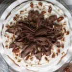 - Top with the remaining whipped topping and sprinkle with extra chopped pecans and chocolate shavings.