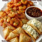 Crispy shrimp wrapped in wonton wrappers and fried to golden perfection, seasoned with bold flavors for a delightful appetizer or snack.