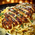 Serve Garlic Parmesan Cajun Spaghetti hot from the skillet. You can place a generous portion on each plate and top it with sliced chicken. For extra color and freshness, sprinkle chopped fresh parsley over the dish. This meal pairs well with a side salad or garlic bread for a full dining experience.