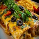 A delicious and comforting dish filled with shredded chicken, topped with a creamy green sauce and melted cheese, perfect for family dinners.