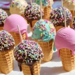 Delicious and fun Ice Cream Cone Cake Pops for any celebration, combining bite-sized cake pops with whimsical ice cream cones.