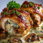 Kurczak Faszerowany Pieczarkami i Serem w Maślanym Sosie Czosnkowym