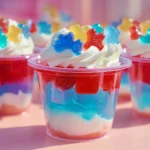 Top and Serve: Right before serving, add a swirl of whipped cream on top of each shot. Garnish with gummy bears or themed candies, and insert decorative picks if desired. Serve cold and enjoy!