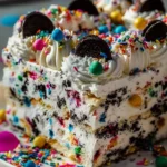 A delightful no-bake dessert combining birthday cake flavors with crunchy Oreos, perfect for any celebration!