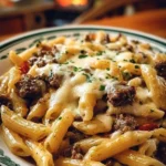 Philly Cheesesteak Pasta is best served hot. You can top it with extra cheese or some chopped parsley for a fresh touch. Pair it with a side salad or garlic bread to complete your meal.