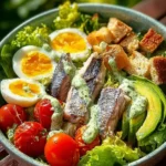 A delicious and nutritious salad packed with healthy fats, protein, and fresh veggies, perfect for lunch or a light dinner.