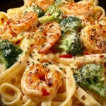 A delicious and creamy pasta dish that combines savory flavors of shrimp and broccoli with a rich Alfredo sauce, perfect for a quick weeknight dinner or special occasion.