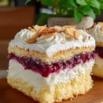 Pyszny, lekki deser z kremowej konsystencji i owocowym musem porzeczkowym, idealny na każdą okazję.