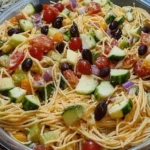 Spaghetti salad is a refreshing and tasty dish that brings together the goodness of pasta and fresh vegetables. It’s a wonderful option for summer picnics, family gatherings, or any time you want a light meal that’s packed with flavor.