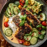 The Spicy Ginger Sesame Crusted Salmon Bowl is a delightful and healthy meal that combines flavors and textures in one bowl. It’s filled with bite-sized chunks of salmon, fresh vegetables, and a tasty sauce that packs a flavorful punch. This dish is perfect for anyone looking for a quick yet satisfying dinner option.