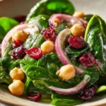 Spinach, Chickpea, and Cranberry Salad with Lemon Olive Oil is a refreshing and nutritious dish. Packed with vitamins and minerals, this salad is perfect for a light lunch or a side dish for dinner. The combination of spinach, chickpeas, and cranberries offers a delightful mix of textures and flavors. Plus, the homemade lemon olive oil dressing adds a zesty touch that ties everything together beautifully.