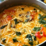 Pyszna, rozgrzewająca zupa kokosowa z kurczakiem i makaronem, idealna na chłodne dni.