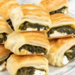 Pyszne i chrupiące zawijane ciastka francuskie z aromatycznym farszem szpinakowym i fetą, idealne na szybkie przekąski.